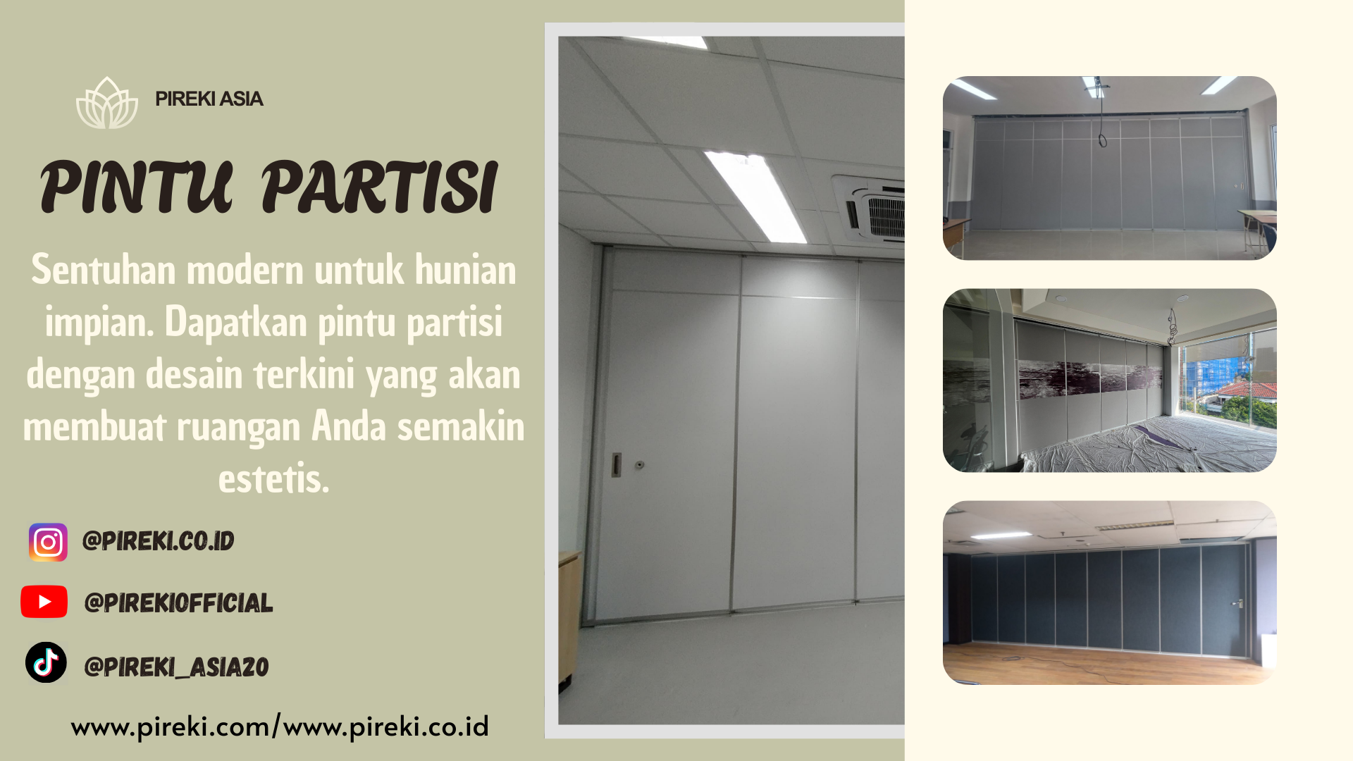 Di era modern seperti sekarang, kebutuhan akan ruangan yang fleksibel dan multifungsi semakin meningkat. Baik di rumah, kantor, hotel, restoran, sekolah, maupun gedung serbaguna, sering kali kita membutuhkan penyekat ruangan yang praktis tanpa harus melakukan renovasi besar. Oleh karena itu, salah satu solusi terbaik yang dapat dipilih adalah pintu partisi Sorepa.