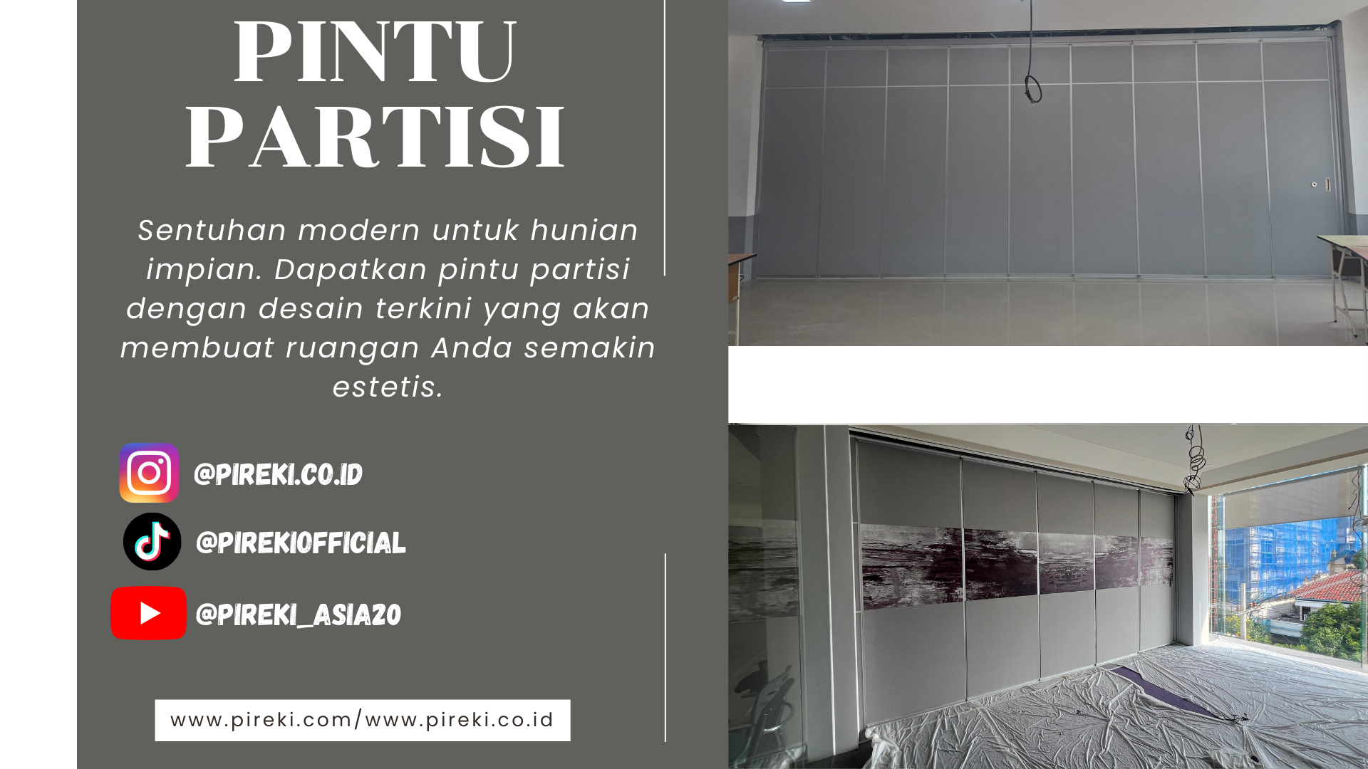 Apakah anda berminat mengaplikasikan partisi ruangan ? Hubungi PIREKI untuk konsultasi & informasi lebih detail melalui kontak di bawah :