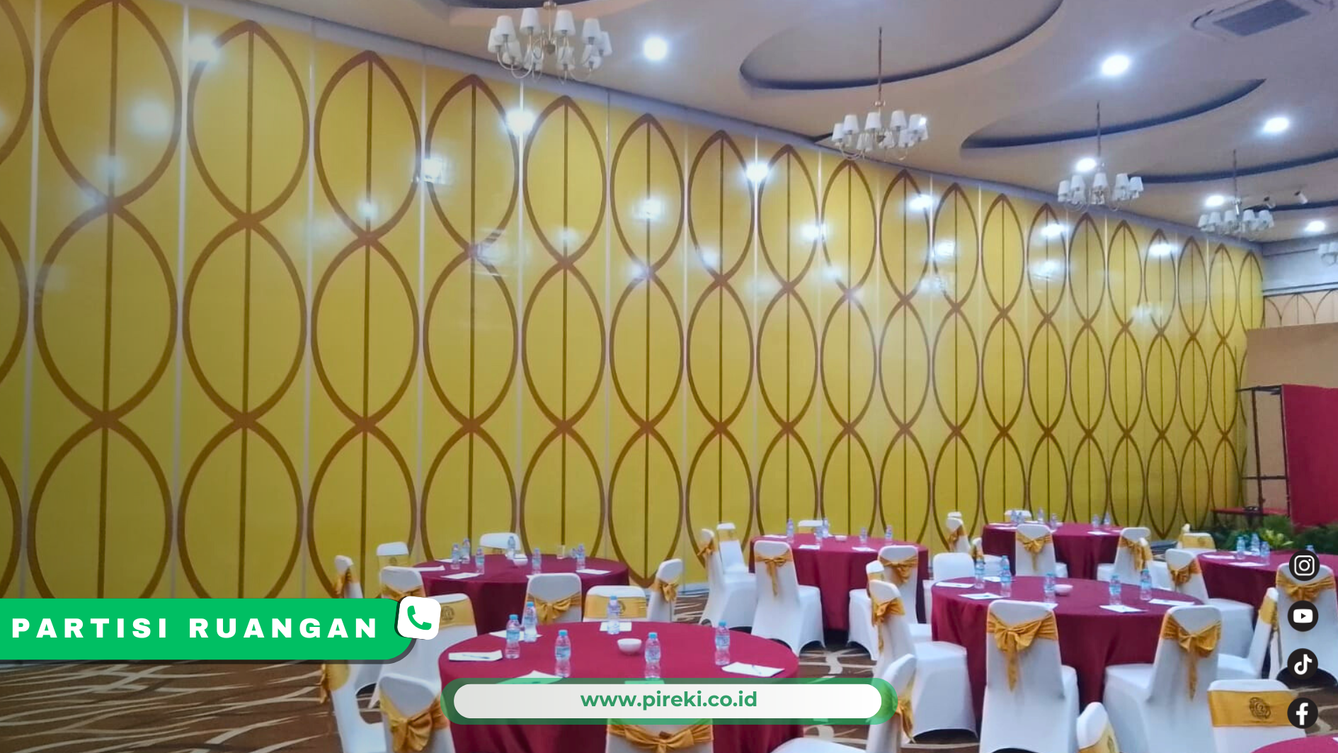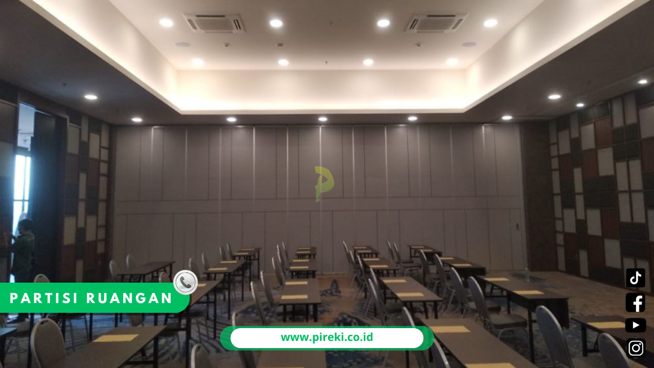 Partisi movable atau yang biasa dikenal penyekat ruangan adalah jawaban dari konsep fleksibilitas dan estetika dalam satu paket lengkap. Sistem penyekat ruangan yang di rancang agar dapat di lipat atau di pindahkan dari panel ke panel sesuai kebutuhan ruangan. Dalam bidang arsitektur dan kontruksi modern, jenis partisi ini menjadi pilihan utama dalam menyajikan ruangan yang fleksibilitas tinggi, efisiensi ruang, serta kemampuan untuk merubah fungsi dengan cepat. Secara teknis, partisi movable terdiri dari panel panel modular yang dirakit dalam suatu sistem rel yang menggantung pada langit-langit ruangan.
