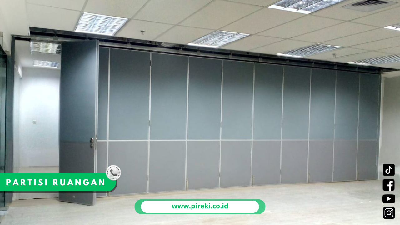 Jika dahulu dinding hanya berfungsi sebagai penyekat permanen, kini hadir sebuah teknologi yang dapat menyekat ruangan secara mudah & praktis. Penyekat ruangan ini memungkinkan membagi satu ruangan menjadi beberapa ruang kecil dalam sekejap lalu mengembalikan ruangan seperti semula. Dalam era modern seperti sekarang, kebutuhan akan ruangan yang fleksibel semakin meningkat. Banyak konsumen baik di lingkungan perkantoran, hotel, restoran, maupun Ruang Meeting, mencari cara praktis untuk mengatur tata ruang tanpa harus melakukan renovasi permanen. Oleh karena itu, hadirnya Pintu Partisi Lipat tipe Nice Partition menjadi jawaban yang tepat.